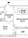 - Оптимальне планування (як для 1-кімнатної кв. у цьому будинку)