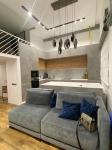 Ремонт новий та виконаний за проектом дизайнера. У квартирі мешкали пів року, все в ідеальному стані. Стелі в квартирі понад 4 метри, що видно на фотографіях, і при зрості 185 см на другому поверсі ви не торкаєтеся до них. Квартира простора та ідеально спроектована, з двома вбиральнями та великим залом, об'єднаним з кухнею. Стільниця на острові та в кухонній зоні виконана з каменю, без використання пластику та дешевих матеріалів. Навіть вікна було замінено, і виконано звукоізоляцію у всій квартирі.