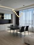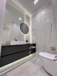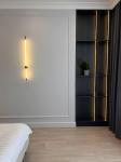 все стены покрашены, потолок-гипс, топовая электрика-шнайдер, санузел- мебель мдф, куча альтернативного света и подсветок ,смесители скрытого монтажа-золото, много мест хранения, очень крутая и дорогая мебель!