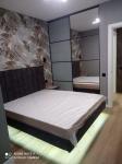 Балкон приєднаний в один простір зі спальнею, утеплений із двох боків. Так само підлога і стеля.