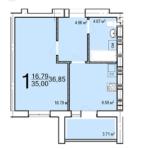 Квартира площею 36.8 м² розташована на 1‑му поверсі 9‑поверхового будинку. Стан — після будівництва, зручне планування. Переуступка.