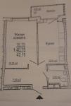 Квартира знаходиться на 6-му поверсі 14 поверхового будинку. Загальна площа – 42.15 м2, житлова площа – 16.75 м2, кухня – 12.61 м2.